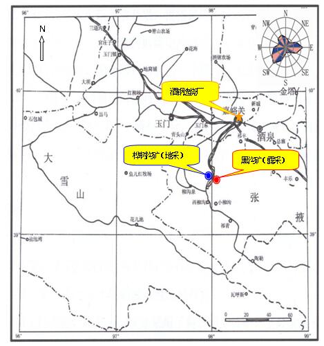 項目概況:鏡鐵山鐵礦是酒鋼最主要的鐵礦石原料基地,其地處甘肅省肅南裕固族自治縣祁豐鄉(xiāng)鏡內,位于東經98°03′,北緯39°22′,東北直距酒泉鋼鐵公司所在地嘉峪關約55km,有鐵、公路相通,鐵路全程78km,公路計程138km,交通運輸方便。地理位置如下圖所示。