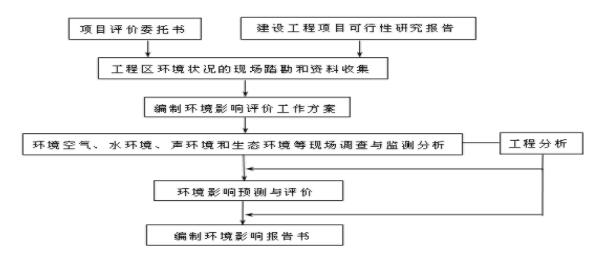 主要工作內容:通過現場調查、資料收集、分析計算等預測評價本變更工程對周圍環(huán)境影響的程度,并針對這些影響提出減緩措施,使工程建設與當地的環(huán)境保護和城鎮(zhèn)規(guī)劃相協調。在此期間廣泛征詢公眾意見和建議并對公眾意見進行反饋。主要工作程序見下圖。