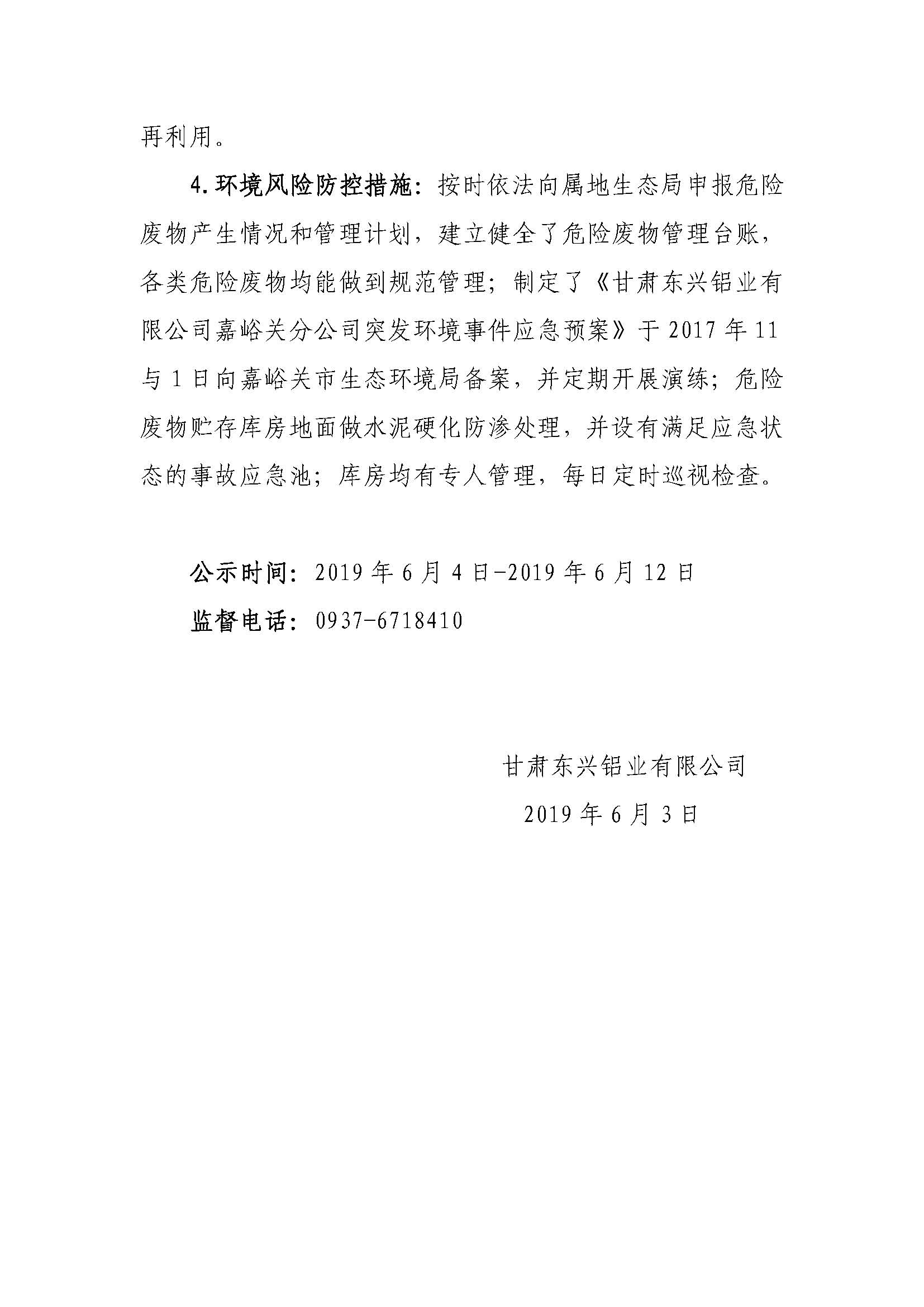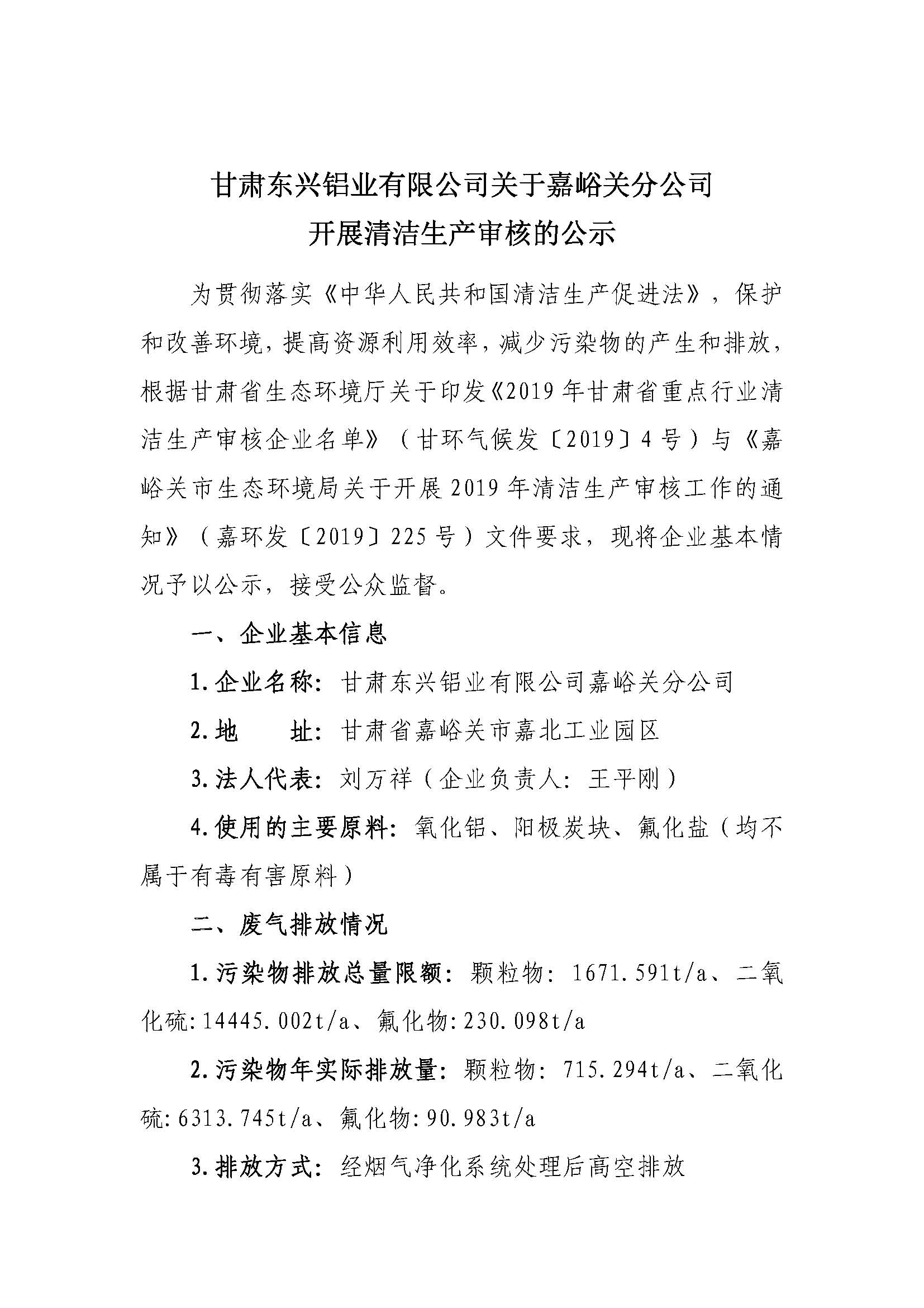 甘肅東興鋁業(yè)有限公司關(guān)于嘉峪關(guān)分公司開(kāi)展清潔生產(chǎn)審核的公示