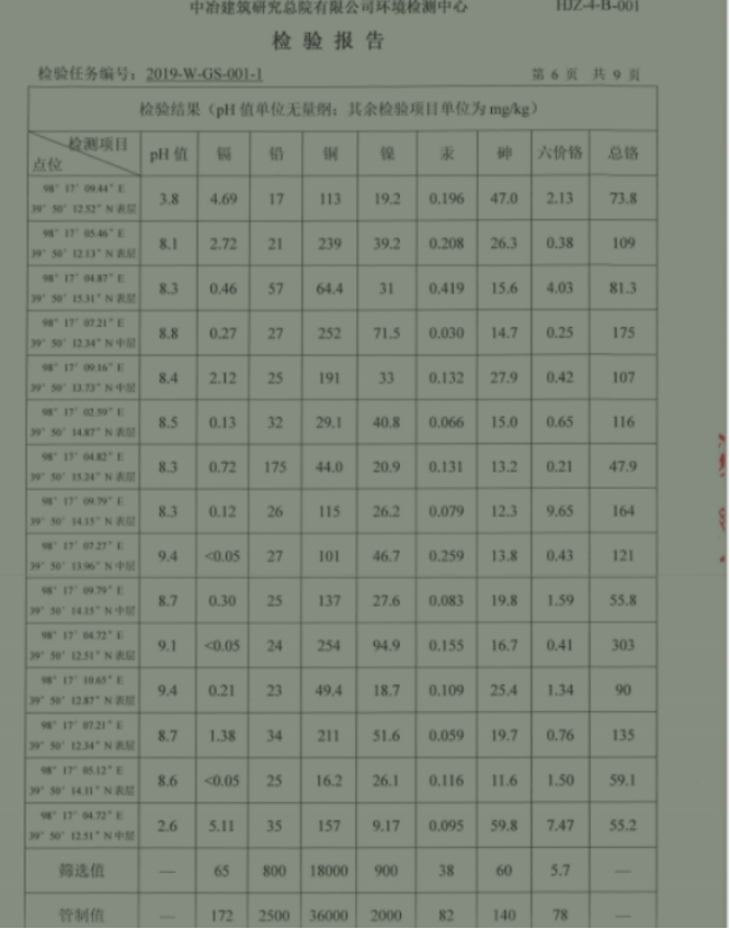 | 監(jiān)測時間 | 2019年3月21日 | 監(jiān)測項目 | PH、鎘、鉛、銅、鎳、汞、砷、六價鉻、總鉻 | |