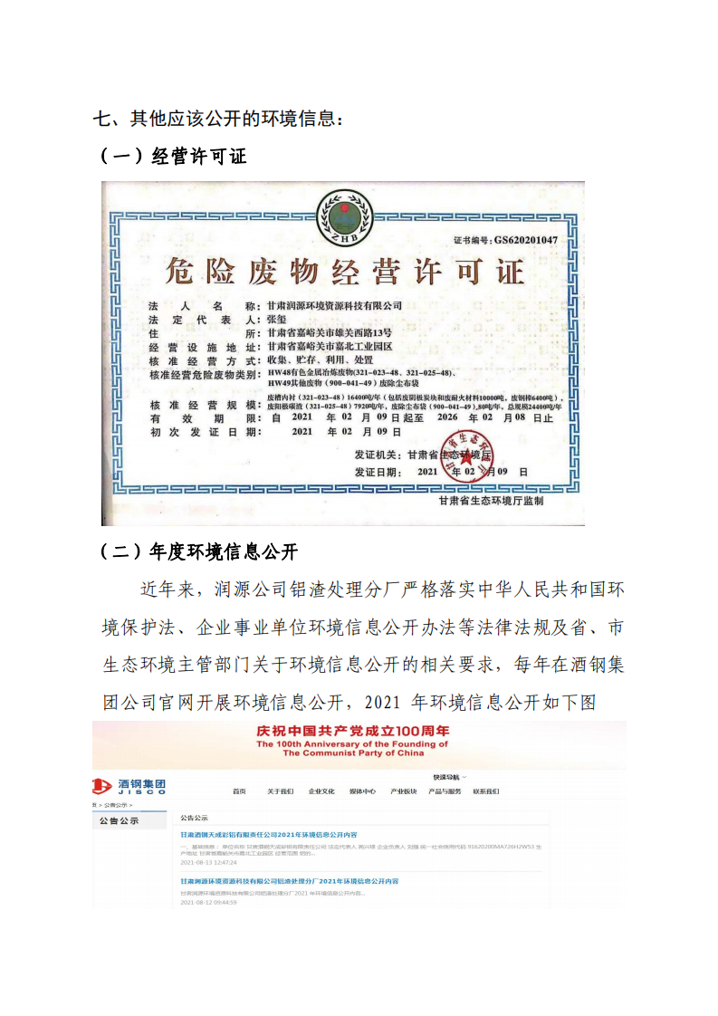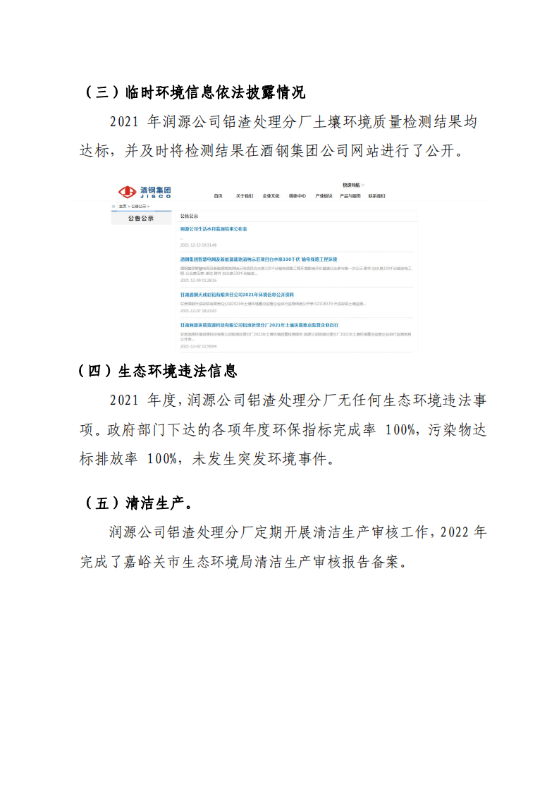 甘肅潤(rùn)源環(huán)境資源科技有限公司鋁渣處理分廠2022年環(huán)境信息公開(kāi)
